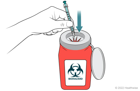 Throw away the needle in a sharps container or other solid plastic container. You can get a sharps container at your pharmacy.