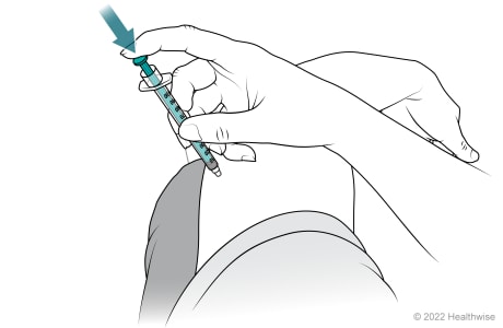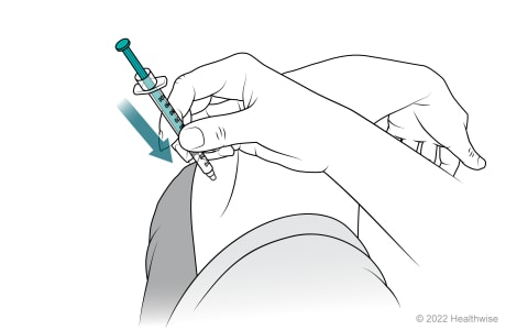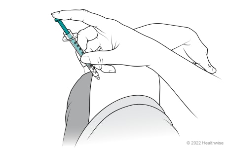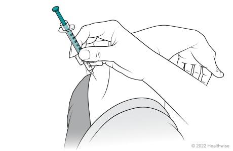 Make sure the area of skin where you will give the shot is clean. If you use alcohol to clean the skin before you give the injection, let it dry. Remove the cap from the syringe.